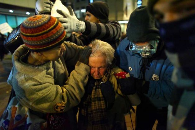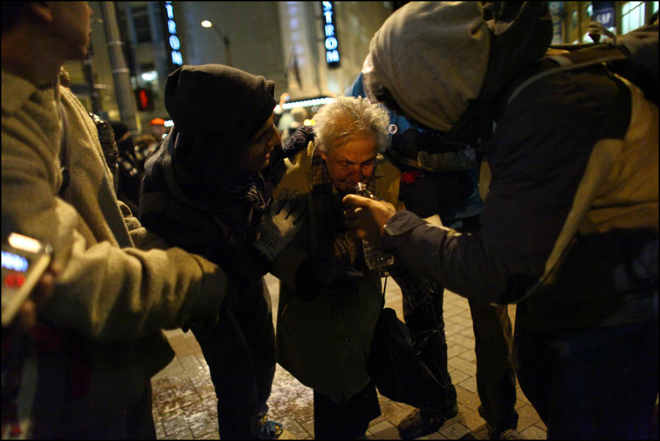 Near the last week of December I got a call from the Guardian in London to interview and photograph 84 year old activist Dorli Rainey for their Weekend Magazine. You might remember Dorli as being famously pepper sprayed during the Occupy Seattle protests a few months ago. The shocking image that spread like wild fire — taken by AP photographer Joshua Trujillo for the Seattle PI, depicted Dorli just moments after being doused with milk to counteract the effects of the spray.